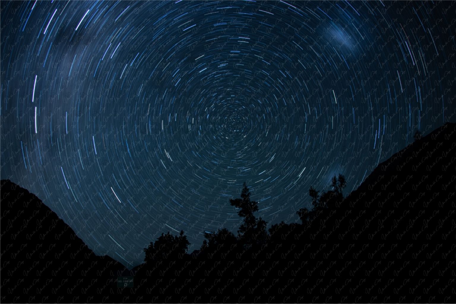 Esta imagen retrata el movimiento del cielo nocturno apuntando al centro polar, capturado en una exposición continua de 30 minutos, donde las estrellas dibujan círculos perfectos sobre el paisaje en silencio absoluto.